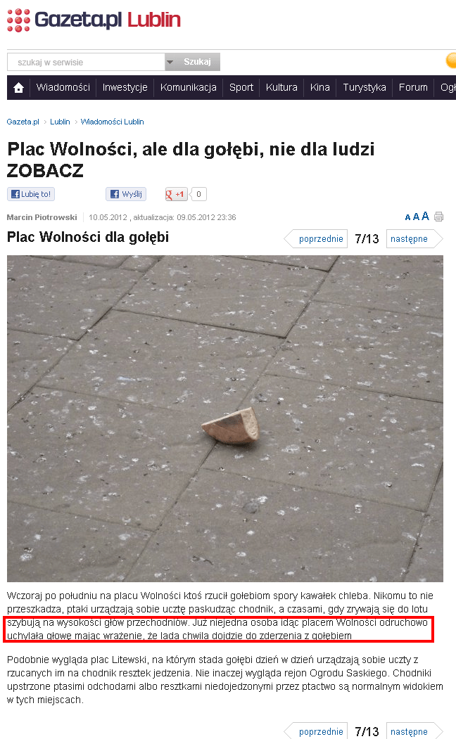 1. no i gołębie poznały, że chleb w celach medialnych podrzucony – i uciekły, guano pozostawiając jeno