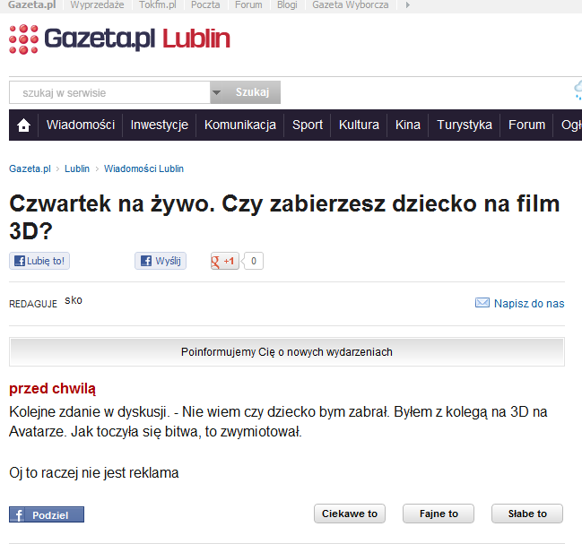 O rety! lehardi Szybkie cięcia w stronę zgięcia 17 Maj 2012 1 Minute Ja też tak mam. Jak czytam gazety. Nie, to na pewno nie jest reklama. Źródło: „Gazeta w Lublinie” Udostępnij: Kliknij, aby udostępnić na X (Otwiera się w nowym oknie) X Kliknij, aby udostępnić na Facebooku (Otwiera się w nowym oknie) Facebook Kliknij by wydrukować (Otwiera się w nowym oknie) Drukuj Kliknij, aby wysłać odnośnik e-mailem do znajomego (Otwiera się w nowym oknie) E-mail Lubię Wczytywanie… Podobne Opublikowane przez lehardi Zobacz wszystkie wpisy, których autorem jest lehardi Opublikowano 17 Maj 2012