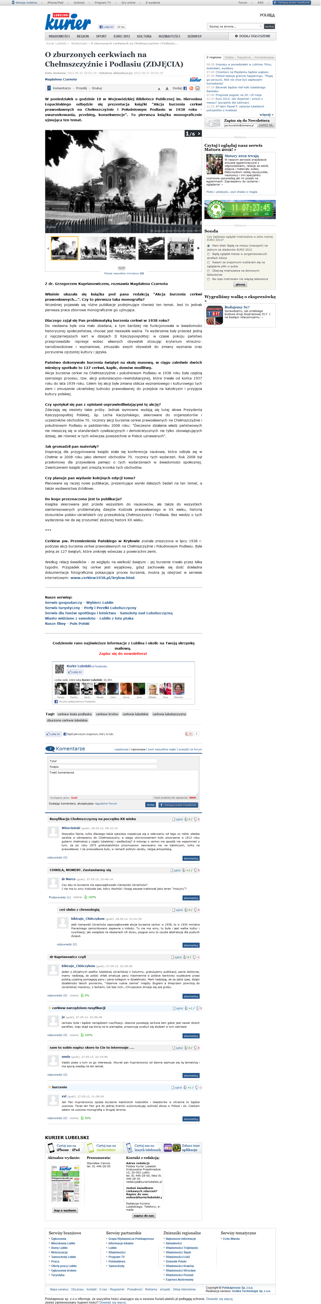 „Kurier Lubelski” zamieszcza dzisiaj wywiad z dr. Grzegorzem Kuprianowiczem o zburzonych cerkwiach Chełmszczyzny: