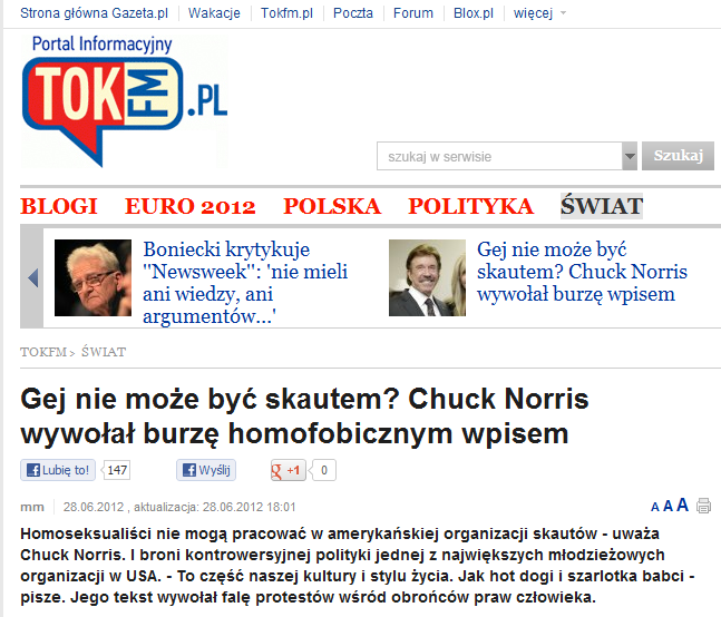 Też go wyrzucą z Eski Rock? lehardi Szybkie cięcia w stronę zgięcia 29 czerwca 2012 1 Minute A w ogóle to co to za dziwne podejście: osobom które się z czymś nie zgadzają zarzuca się jakąś chorobę? To jak nazwać fobię na kogoś, kto się nie zgadza? Źródło: gazeta.pl Udostępnij: Kliknij, aby udostępnić na X (Otwiera się w nowym oknie) X Kliknij, aby udostępnić na Facebooku (Otwiera się w nowym oknie) Facebook Kliknij by wydrukować (Otwiera się w nowym oknie) Drukuj Kliknij, aby wysłać odnośnik e-mailem do znajomego (Otwiera się w nowym oknie) E-mail Lubię Wczytywanie… Podobne Opublikowane przez lehardi Zobacz wszystkie wpisy, których autorem jest lehardi Opublikowano 29 czerwca 2012