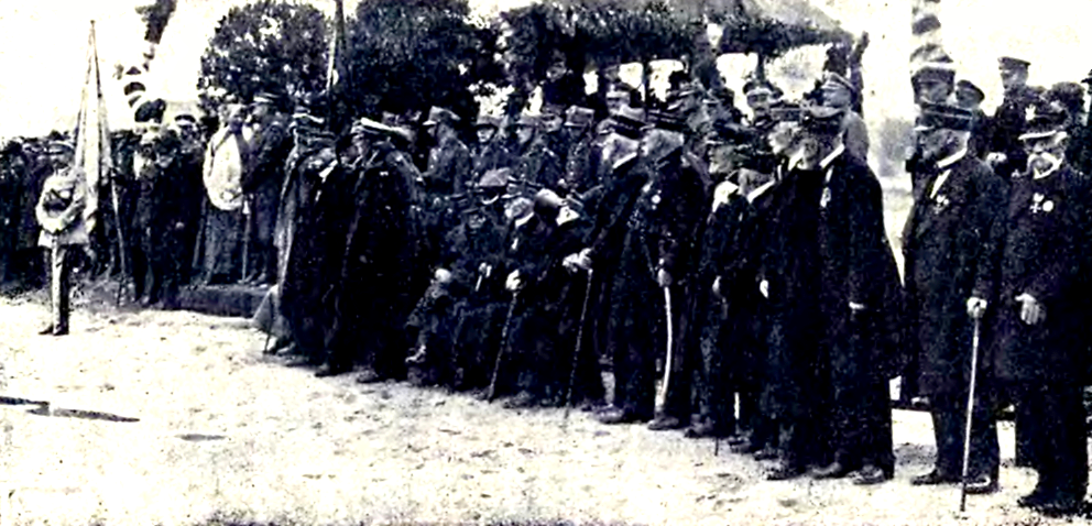 Nadanie Orderów Virtuti Militari żyjącym weteranom Powstania Styczniowego przez Naczelnika Państwa Józefa Piłsudskiego na stokach Cytadeli Warszawskiej 5 sierpnia 1921, w rocznicę stracenia przywódców powstania.Wikimedia Commons – repozytorium wolnych zasobów.