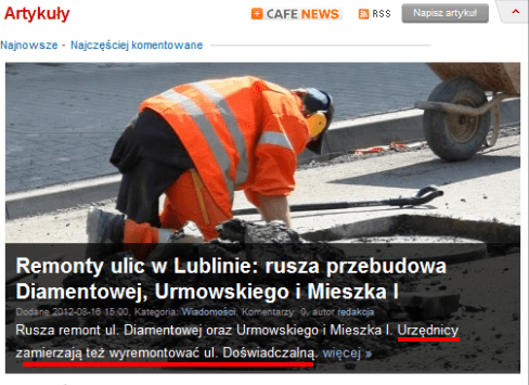 To bardzo dobra wiadomość! lehardi Szybkie cięcia w stronę zgięcia 16 sierpnia 201216 sierpnia 2012 1 Minute Zamiast siedzieć za biurkiem i układać komputerowe pasjanse, wezmą do rak łopaty, do wiaderek trochę asfaltu i zrobią wreszcie coś pożytecznego dla tego miasta P.S. Kocham Pana, Panie Żu(ł)ku! Źródło: mmlublin.pl Udostępnij: Kliknij, aby udostępnić na X (Otwiera się w nowym oknie) X Kliknij, aby udostępnić na Facebooku (Otwiera się w nowym oknie) Facebook Kliknij by wydrukować (Otwiera się w nowym oknie) Drukuj Kliknij, aby wysłać odnośnik e-mailem do znajomego (Otwiera się w nowym oknie) E-mail Lubię Wczytywanie… Podobne Opublikowane przez lehardi Zobacz wszystkie wpisy, których autorem jest lehardi Opublikowano 16 sierpnia 201216 sierpnia 2012