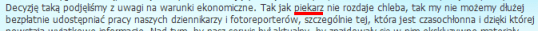 Ale nie trzeba jeść artykułów z „Dziennika”? A chleba się nie czyta? Zresztą porównanie wyjątkowo się Panu Redaktorowi nie udało: bo jeśli mówimy o tym samym piekarzu, to nawet gdyby rozdawał za darmo chleb takiej jakości, jak ten w sklepach, to nikt by go nawet palcem nie tknął… Cieszy jednak, mimo wszystko, realistyczna ocena „rzetelności” własnych artykułów.