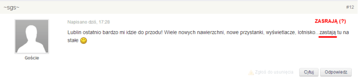 Czas zacząć październik (chyba?) lehardi Szybkie cięcia w stronę zgięcia 3 października 20123 października 2012 1 Minute Będą piętrowe przystanki – z tojtojem na pięterku? A nie lepiej wyposażyć pojazdy MPK w stylowe muszle w kolorach miejskiego przewoźnika? P.S. Komentarz z forum Dziennika Wschodniego: Udostępnij: Kliknij, aby udostępnić na X (Otwiera się w nowym oknie) X Kliknij, aby udostępnić na Facebooku (Otwiera się w nowym oknie) Facebook Kliknij by wydrukować (Otwiera się w nowym oknie) Drukuj Kliknij, aby wysłać odnośnik e-mailem do znajomego (Otwiera się w nowym oknie) E-mail Lubię Wczytywanie… Podobne Opublikowane przez lehardi Zobacz wszystkie wpisy, których autorem jest lehardi Opublikowano 3 października 20123 października 2012