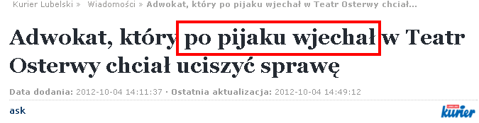 Okazało się bowiem, że chociaż adwokat wiedział i nie powiedział, to nie wiedział mimo wszystko, że pijak – milczący do tej pory jak grób – powiedział, to czego nie wiedział… No i nikt jakoś nie informuje, co ze zdrowiem biednego pijaka, po którym przejechał samochód. No co z nim?!