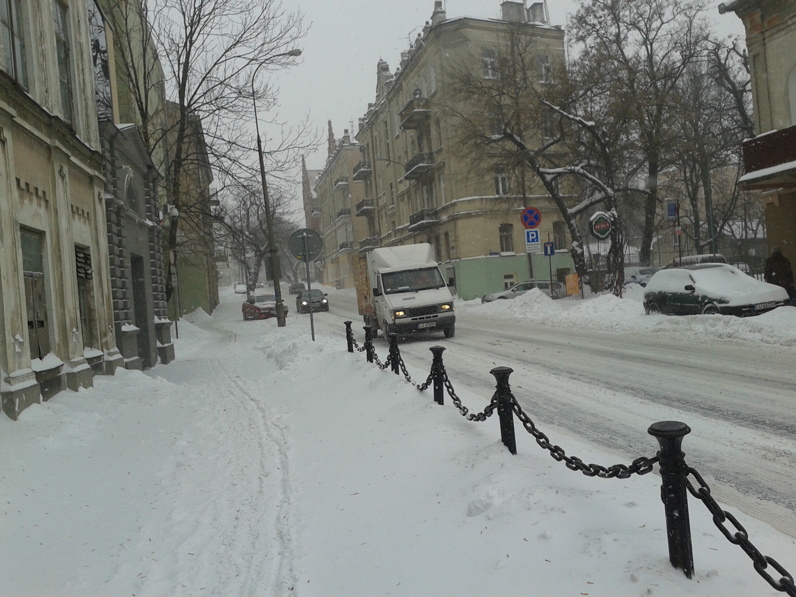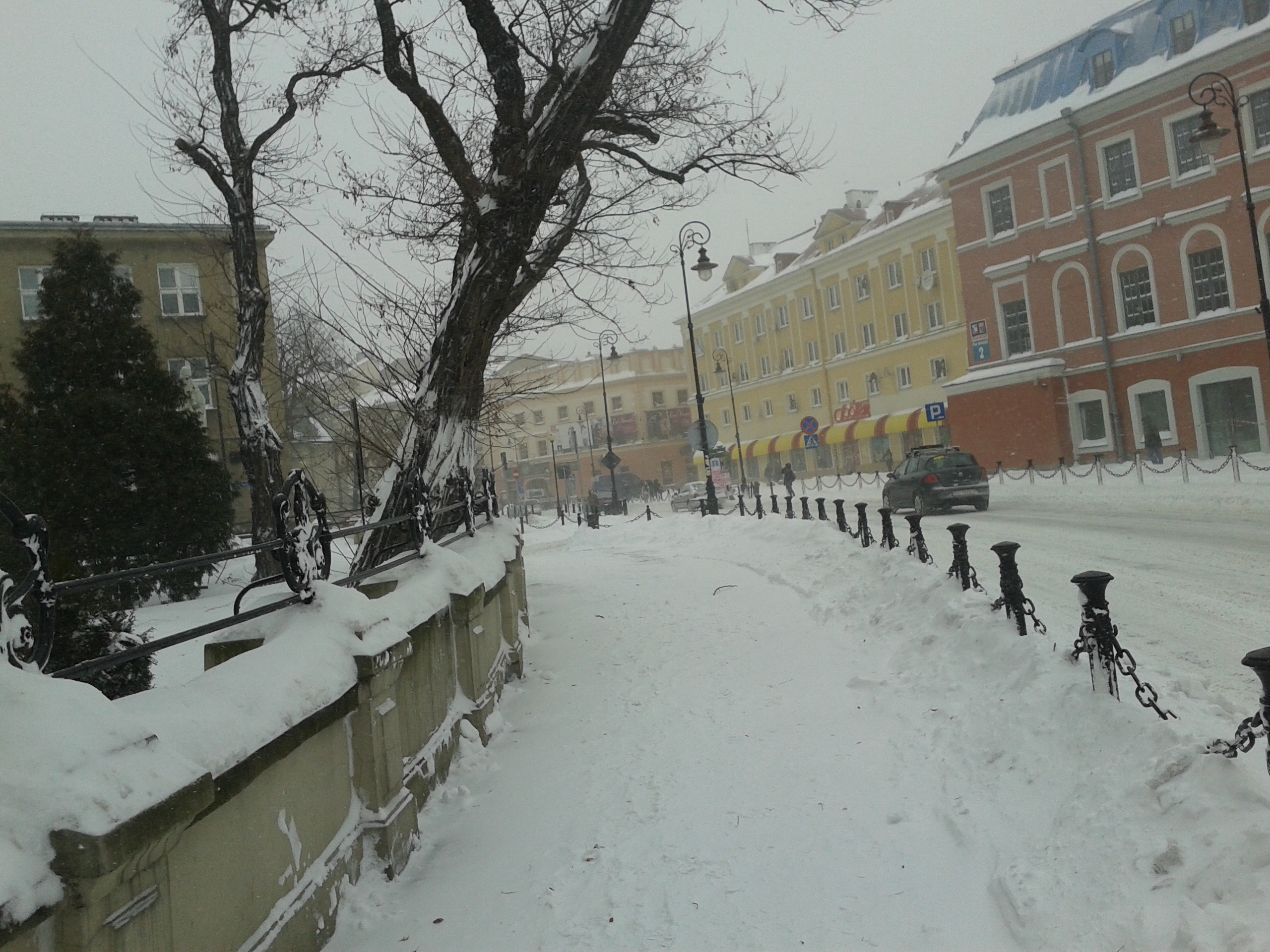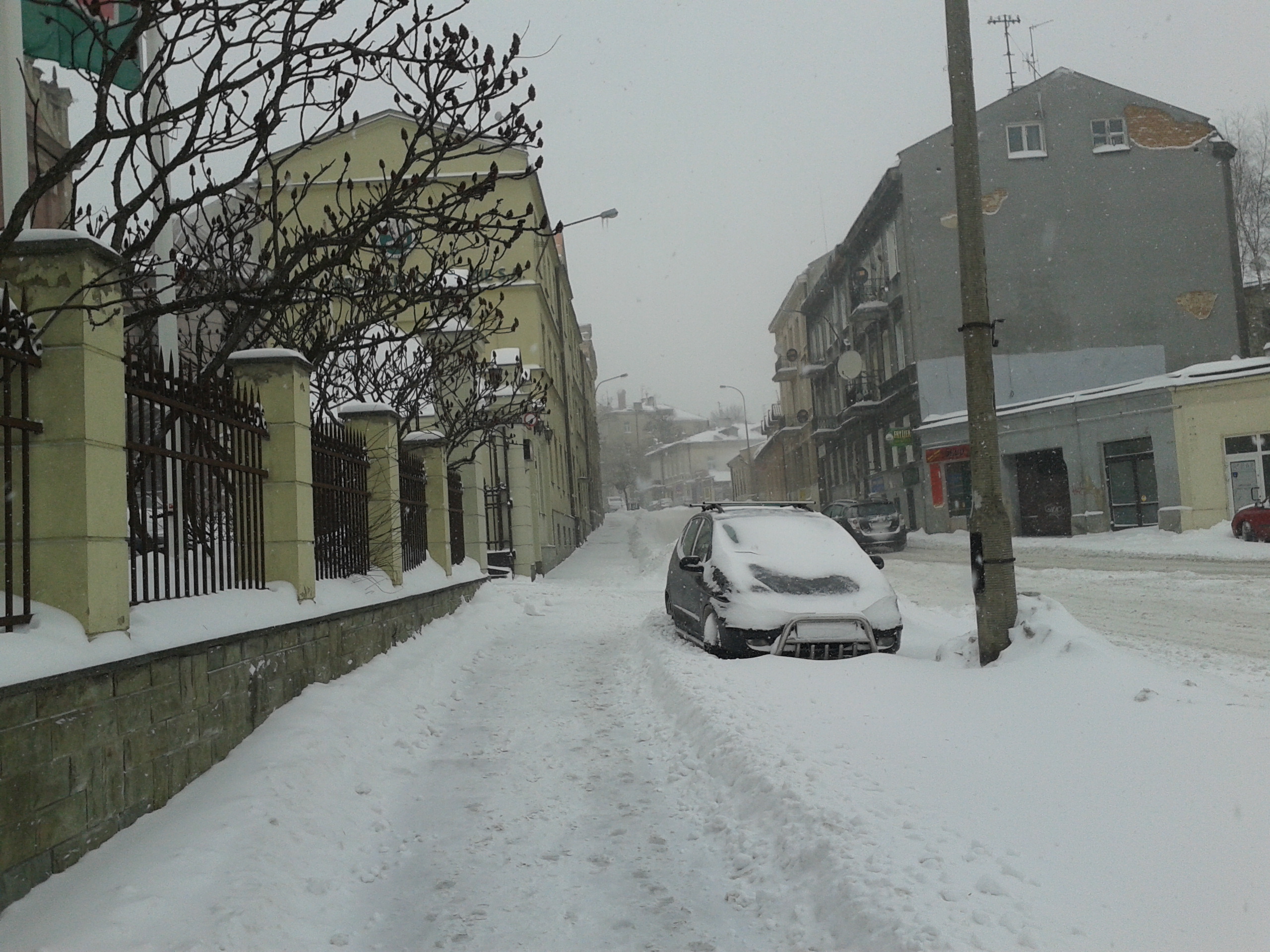 Najpierwszą z wiadomości brukowych jest dziś ta, ze bruku nie widać: śnieg bowiem spadł i wszystko zasypał.