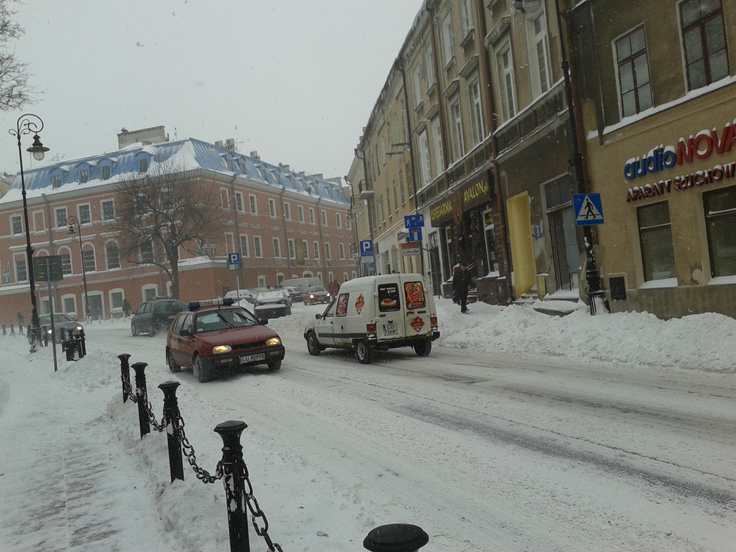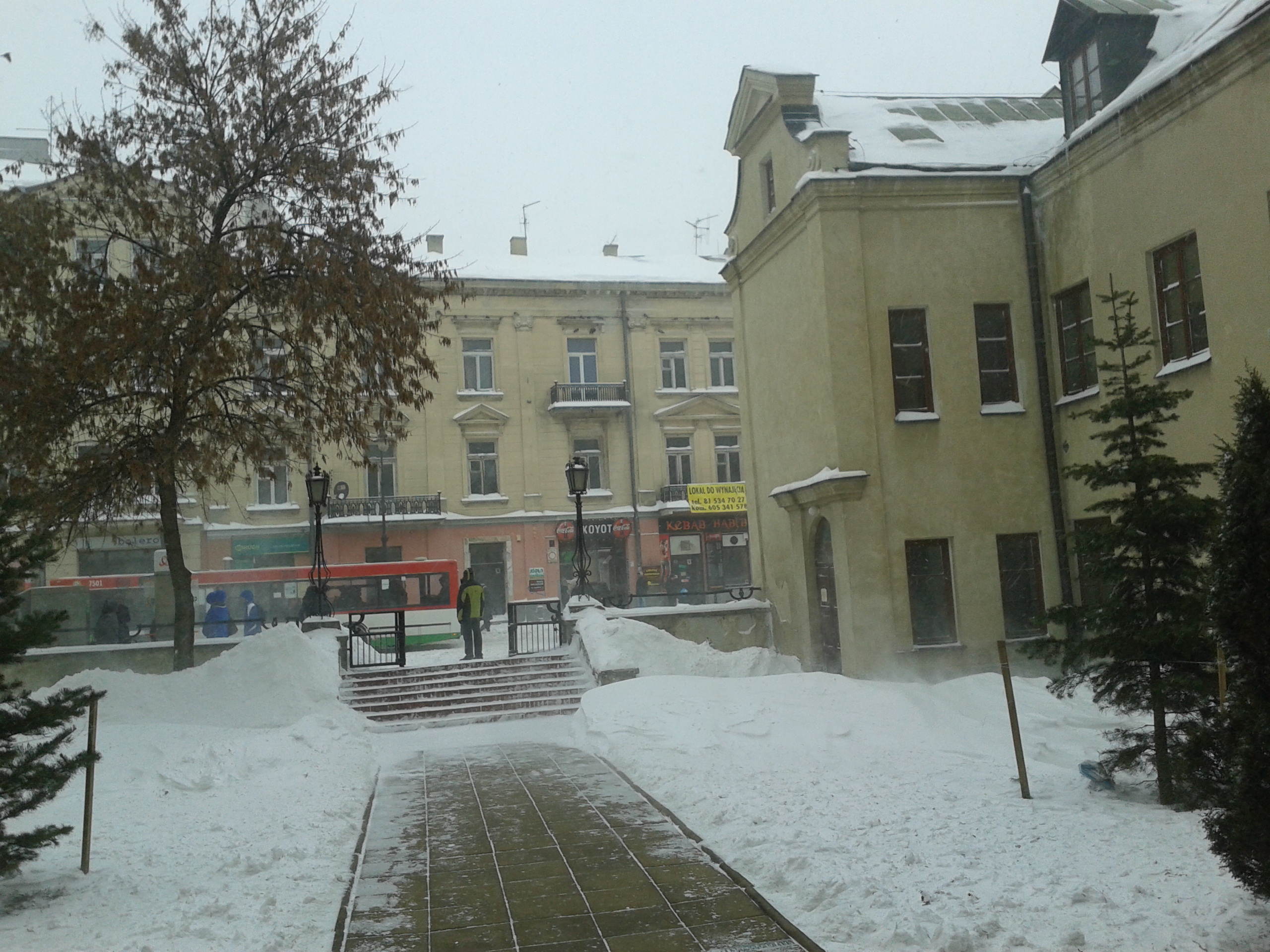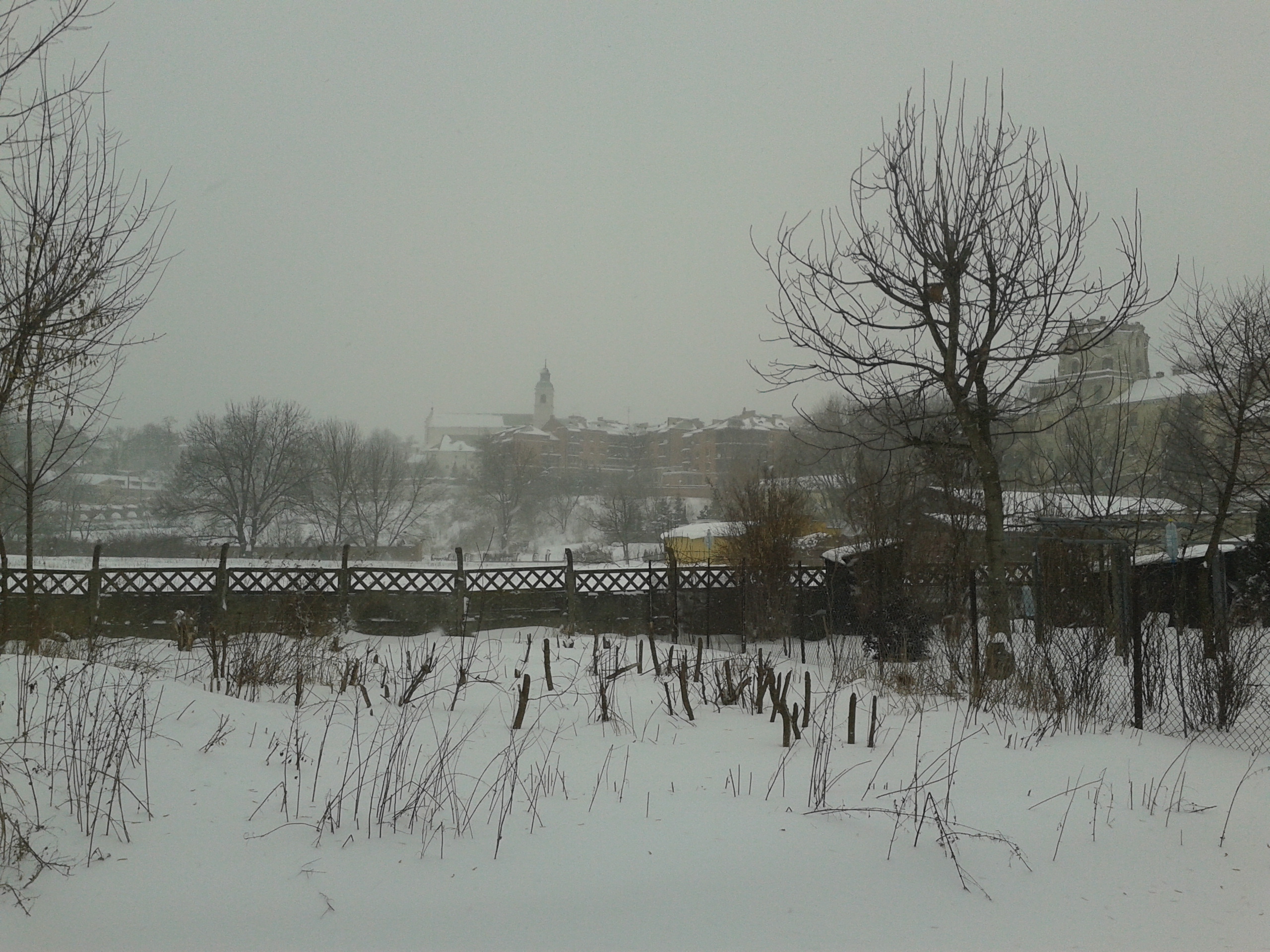 Najpierwszą z wiadomości brukowych jest dziś ta, ze bruku nie widać: śnieg bowiem spadł i wszystko zasypał.