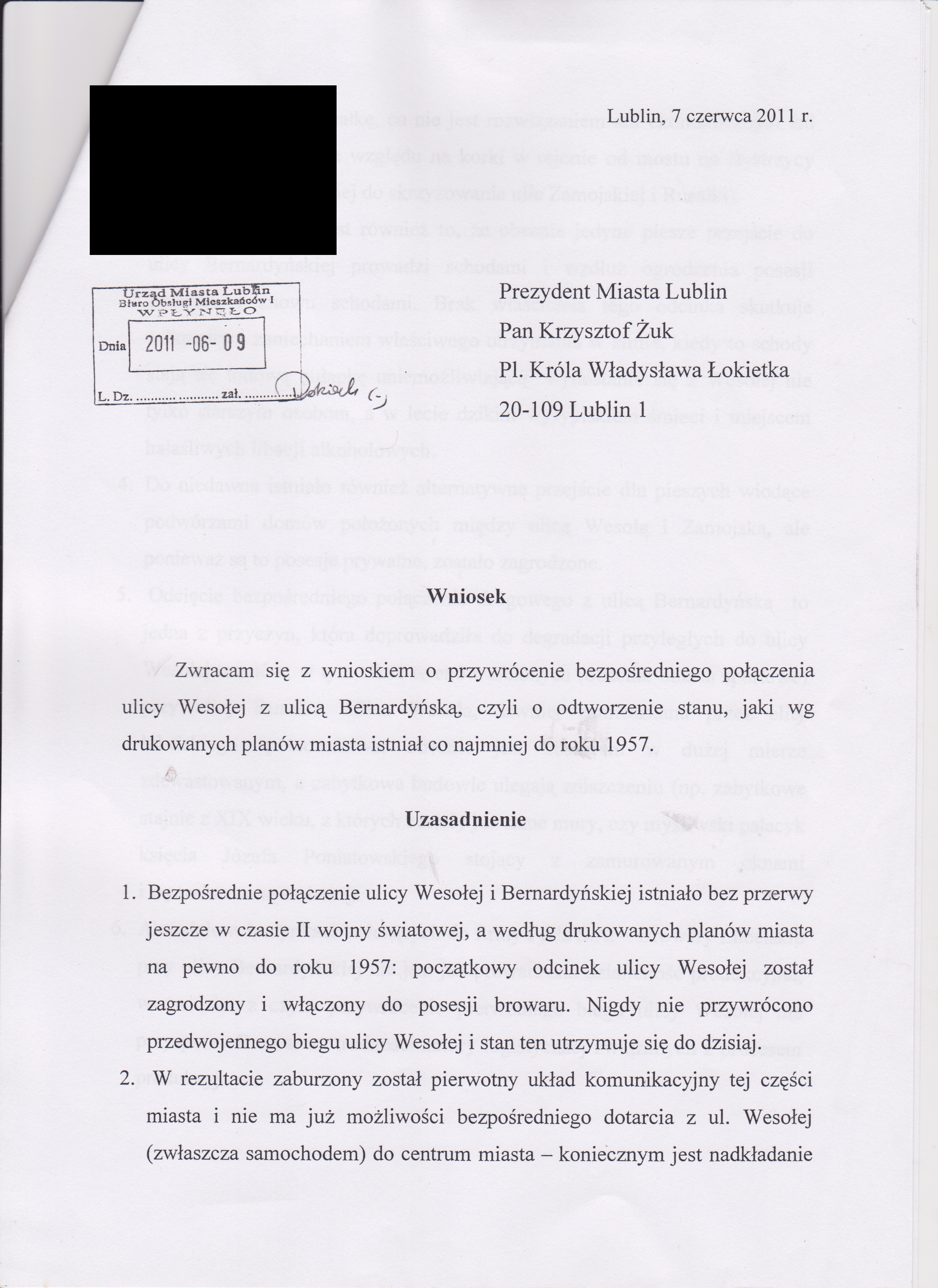 Ponieważ produkcja piwa w browarze przy Bernardyńskiej od lat kilku nie jest już prowadzona, nie powinno być obecnie najmniejszych problemów z odtworzeniem Wesołej w jej pierwotnym biegu. Wychodząc z tego założenia, 7 czerwca 2011, zwróciłem się do Pana Prezydenta Żuka, ze stosownym wnioskiem: