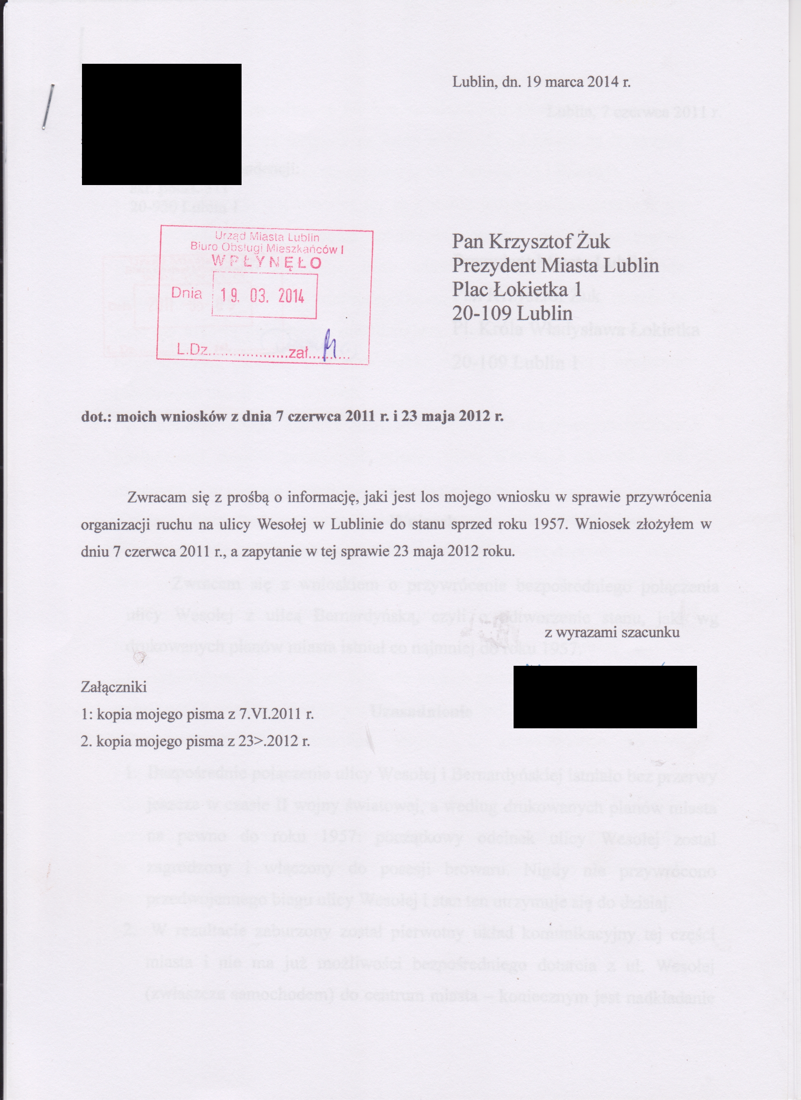 5 myśli na temat “Pytania do Prezydenta Żuka w związku z zajmowaniem ulicy Wesołej przez f-mę Perła S.A”