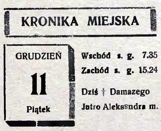 Jeszcze się zima nie zaczęła na dobre, a już na ulicach Lublina, spotyka przechodniów szereg nieszczęść w postaci nieszczęśliwych wypadków spowodowanych niedbalstwem dozorców, którzy lekceważąc sobie przepisy – nie posypują chodników piaskiem przed domami. Poniżej podajemy nazwiska pierwszych ofiar tegorocznej zimy.