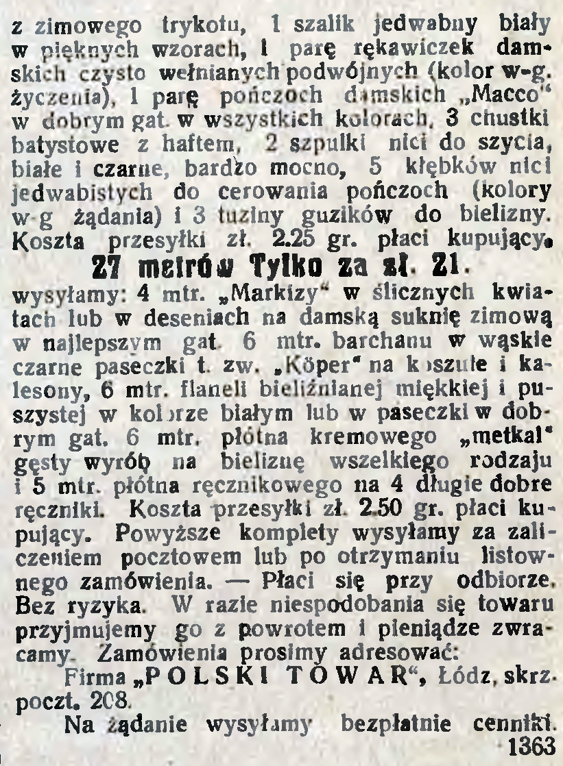 O s t r z e ż e n i e. Ostrzegam przed prowadzeniem jakichkolwiek interesów z inż. Jerzym Teysserem, który po zaręczeniu słowem honoru przeprowadził ze mną tranzakcję oszukańczą czem naraził mnie na stratę tysiąca złotych i jeszcze starał się publicznie mnie zniesławić.
