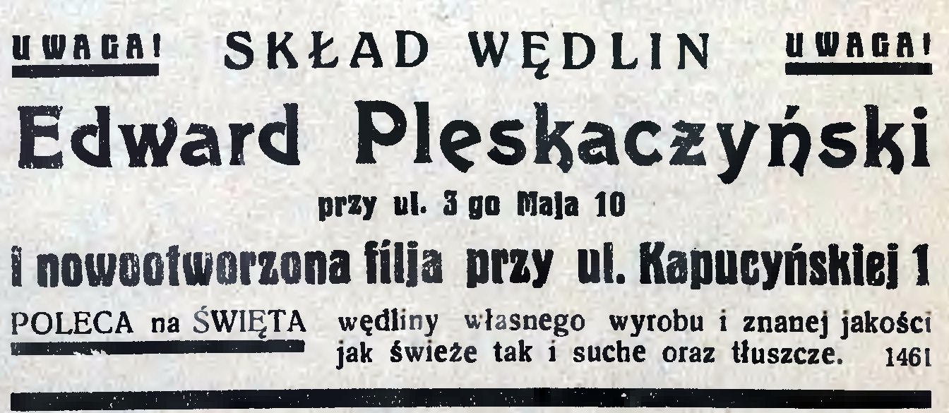 Pod kołami autobusu. Ulica Fabryczna była w dniu wczorajszym widownią wypadku który nieomal nie pociągnął za sobą życia starszego mężczyzny. Oto wspomnianą ulicą przechodził 62 letni Józef Wojsak zamieszkały ul. Spokojna 14. Nagle nadjechał z dużą szybkością autobus zamiejski. Idący nie zdążył się usunąć i dostał się pod koła doznając ogólnych dość ciężkich obrażeń. Wezwane Pogotowie po udzieleniu pierwszej pomocy przewiozło nieszczęśliwego starowinę na kurację do domu.
