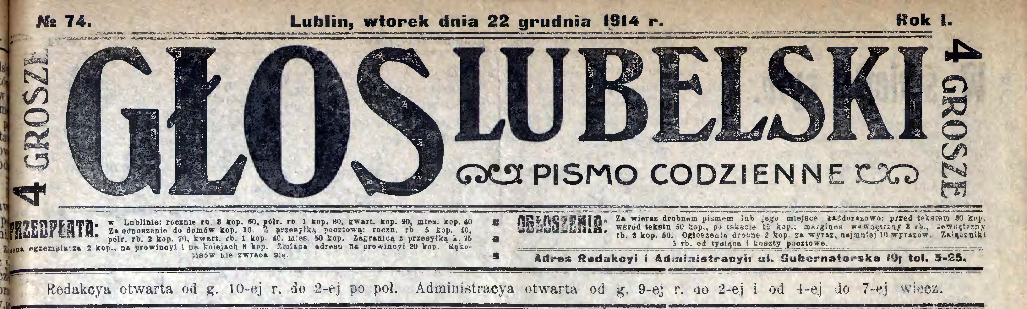 Głos Lubelski z 22 XII 1914 r. (Nr 74)