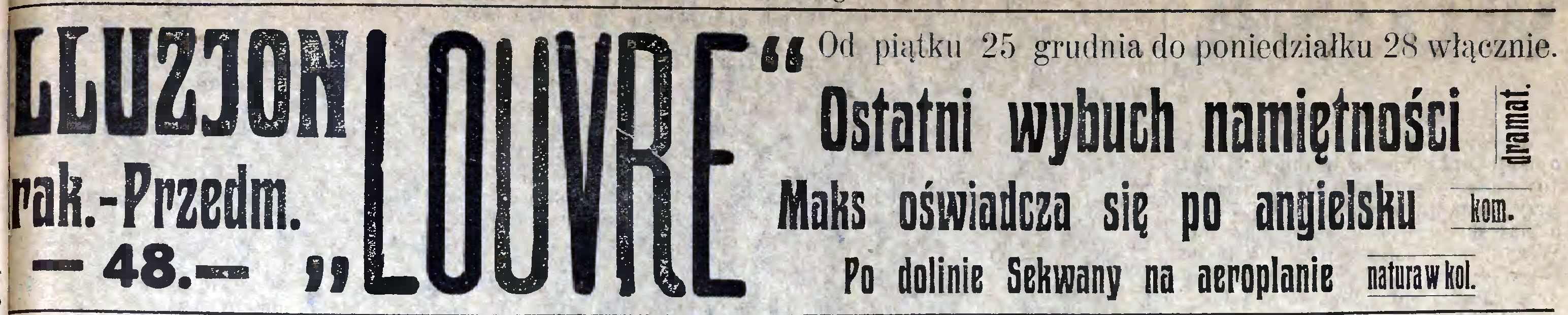 Bioskop „Bristol”. Właściciel nowo-otworzonego bioskopu „Bristol” p. Dąbrowski przygotował efektowny program na dni świąteczne, spodziewając się licznych odwiedzin publiczności lubelskiej.