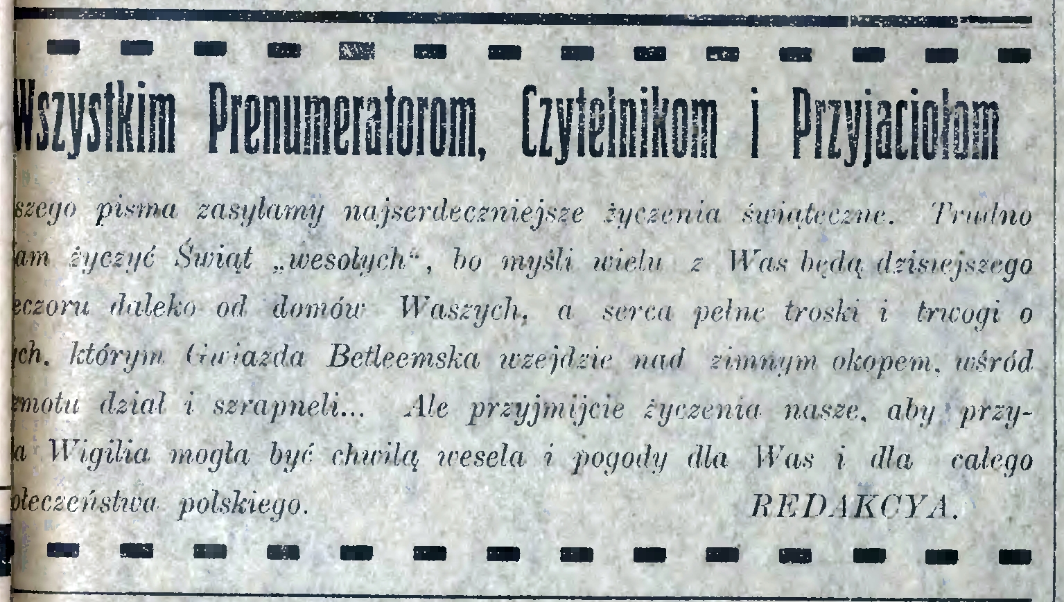 Następny numer „Głosu Lubelskiego” z powodu świąt wyjdzie w niedzielę o zwykłej porze. W razie potrzeby wydamy dodatki nadzwyczajne.