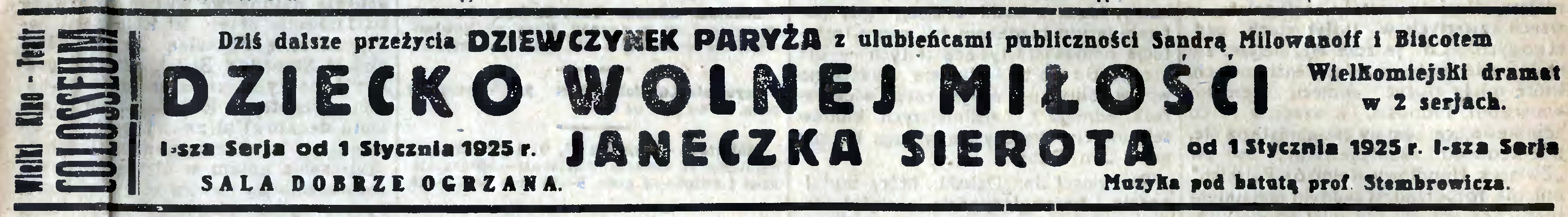 Wczorajszy dzień. (d) Pierwszy dzień nowego 1925 roku przeszedł w mieście naogół spokojnie i uroczyście. Na mieście nastrój świąteczny, lokale publiczne, kina i teatr przepełnione. Tłumy publiczności, korzystając z dopisującej pogody wyległy na ulice, nie zmącając niczem zwykłego spokoju i powagi uroczystego święta. Jak nam wiadomo, w ciągu całego niemal dnia, kronika policyjna zanotowała jedynie jeden wypadek zakłócenia spokoju publicznego i opilstwa. „Święty rok” trzeba przyznać, Lublin rozpoczął godnie.