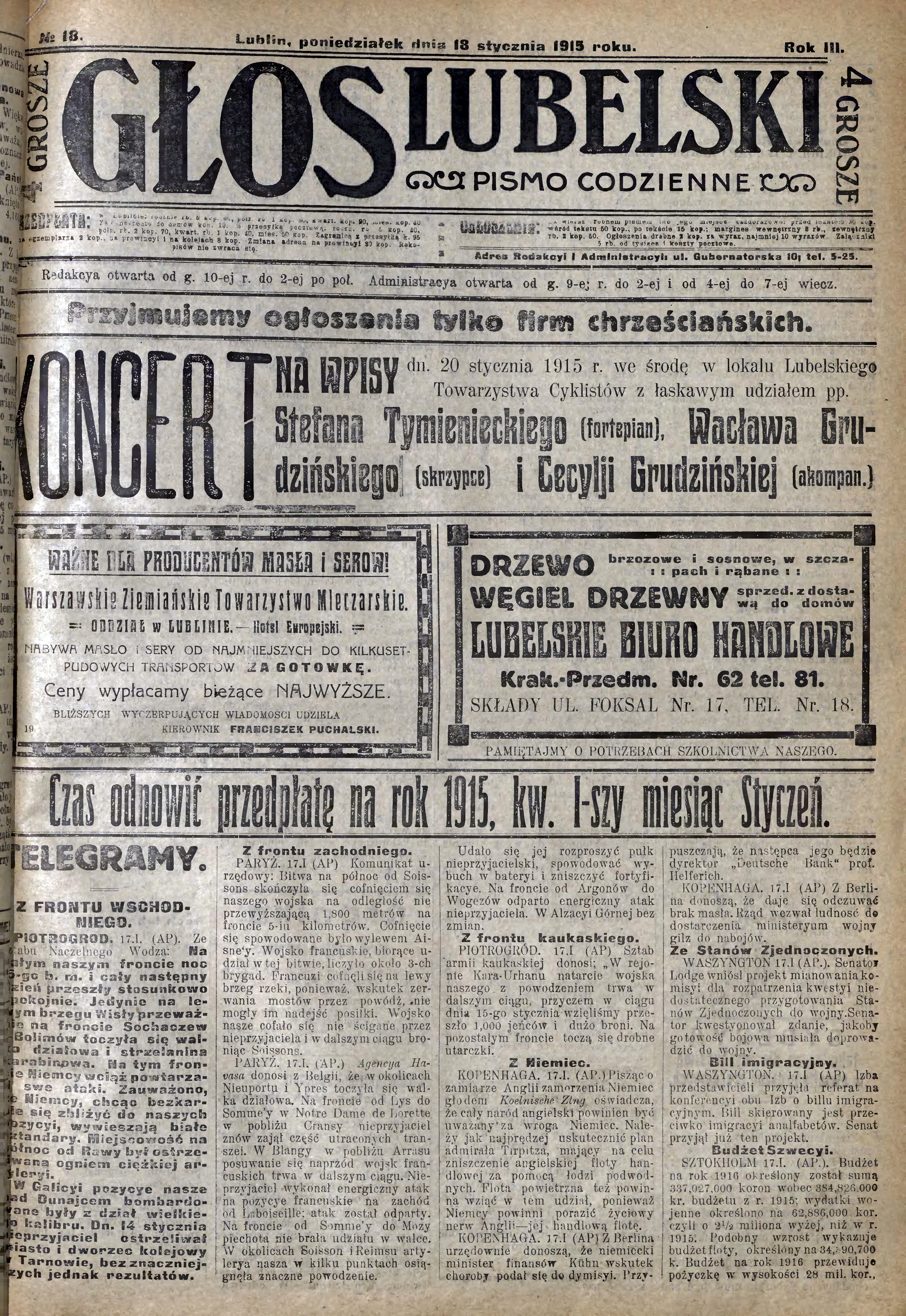 Głos Lubelski z 18 I 1915 r. (Nr 18)
