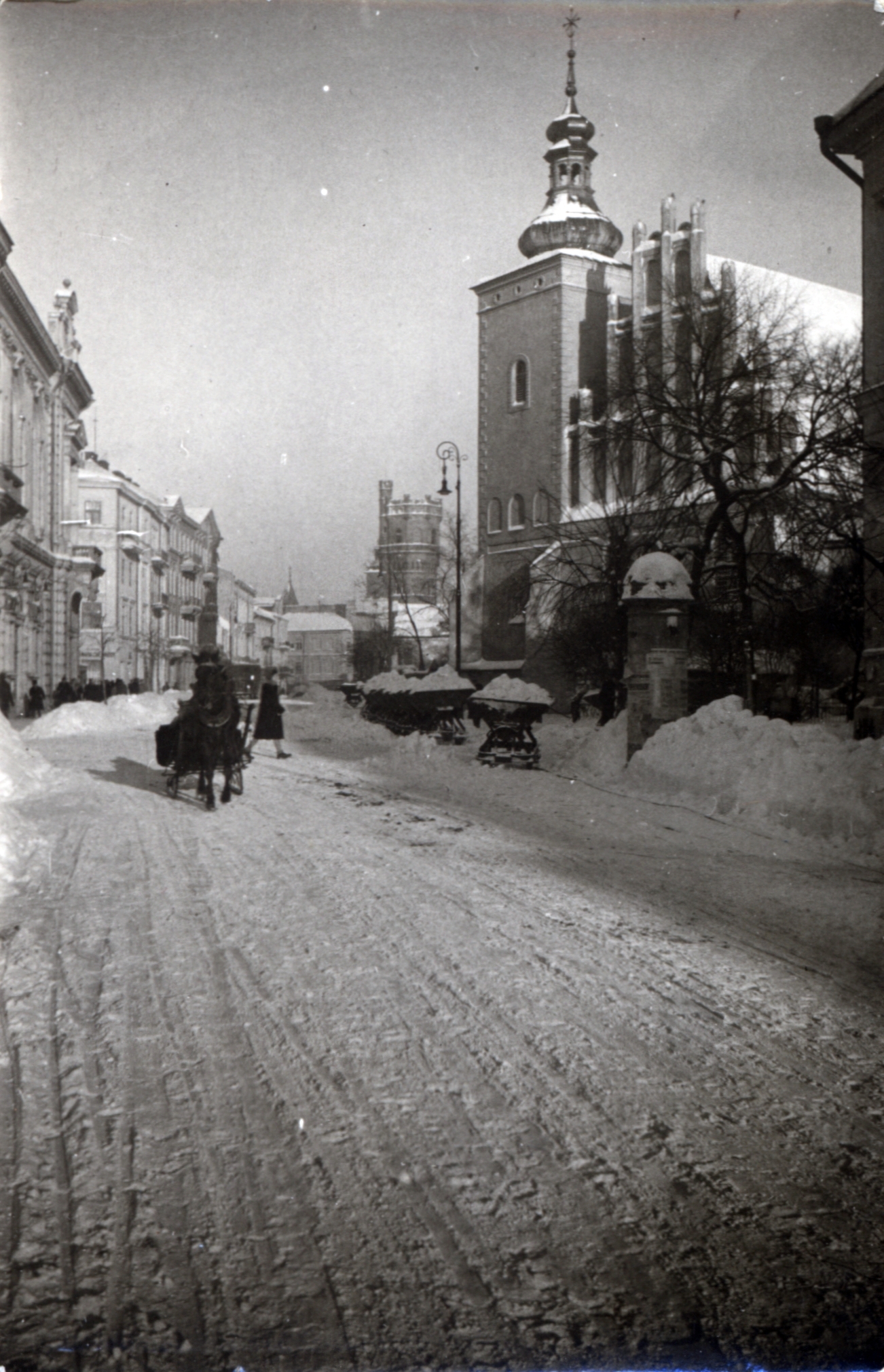 = Strzały w śródmieściu (w.) W dniu onegdajszym , w godzinach wieczorowych posterunkowy służby śledczej zatrzymał koniokrada Kazimierza Kowalczyka, którego chciał przeprowadzić do Ekspozytury śledczej. Kiedy obaj znaleźli się na ul. Górnej i zmierzali ku Namiestnikowskiej, koniokrad począł uciekać w kierunku ulicy Dolnej Panny Marji. Pomimo kilkakrotnych wezwań o zatrzymania się ze strony goniącego wywiadowcy, Kowalczyk kontynuował ucieczkę, wobec czego wywiadowca zmuszony był użyć broni palnej, z której dał do uciekającego dwa strzały. Z powodu jednak panujących ciemności strzały chybiły, a koniokrad zbiegł w kierunku pobliskich łąk. Poszukiwanie i pościg za nim zarządzono.
