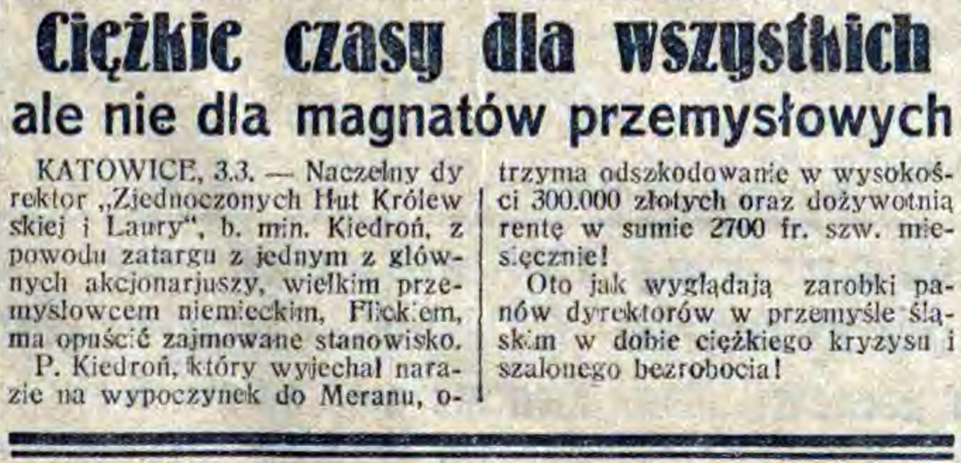 Za potajemny wyszynk pociągnięto do odpowiedzialności właściciela piwiarni przy ulicy Przechodniej Nr 1, u którego znaleziono 1 litr wódki, oraz niejakiego Szlomę Szmira (Krawiecka 16) u którego zakwestjinowano trzy butelki wódki oraz butelkę spirytusu. Za nielegalną sprzedaż wódki pociągnięto również do odpowiedzialności niejaką Dworakową, właścicielkę piwiarni przy ulicy 1-go Maja 40.