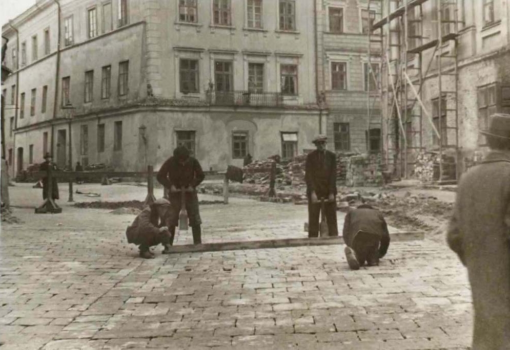 (r) Z miasta. Z nastaniem dni wiosennych rozpoczęto na ulicach roboty brukarskie.