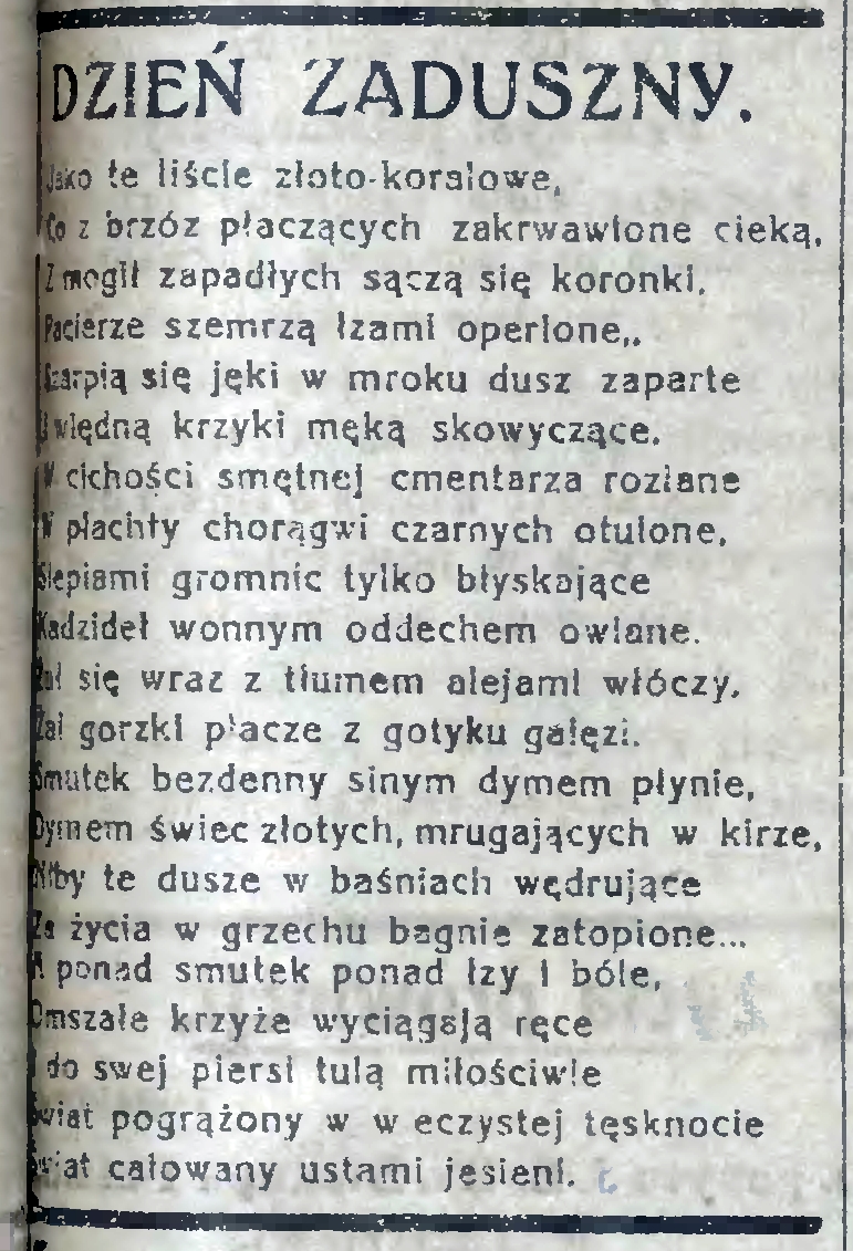 Dzień Zaduszny… lehardi Kurier z Lublina 2 listopada 2015 1 Minute Głos Lubelski z 2.XI.1925 r. (Nr 301) Ilustracje ze zbiorów Lubelskiej Biblioteki Wirtualnej Polub Gabinet na Facebooku! Copyright© Gabinet Osobliwości Udostępnij: Kliknij, aby udostępnić na X (Otwiera się w nowym oknie) X Kliknij, aby udostępnić na Facebooku (Otwiera się w nowym oknie) Facebook Kliknij by wydrukować (Otwiera się w nowym oknie) Drukuj Kliknij, aby wysłać odnośnik e-mailem do znajomego (Otwiera się w nowym oknie) E-mail Lubię Wczytywanie… Podobne Opublikowane przez lehardi Zobacz wszystkie wpisy, których autorem jest lehardi Opublikowano 2 listopada 2015