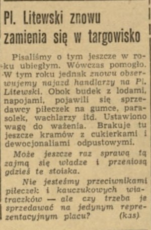 Ale nie ma co się śmiać, sprawa jest poważna: nie od dziś bowiem wiadomo, że litery wyjęte z kontekstu mają wątpliwą wartość ozdobną. Teraz słów kilka o przyszłości głównego placu miasta: lato się zbliża wielkimi kroki i – „obok budek z lodami” – sam już wiesz Czytelniku, co chcę powiedzieć: „historia lubi się powtarzać”.