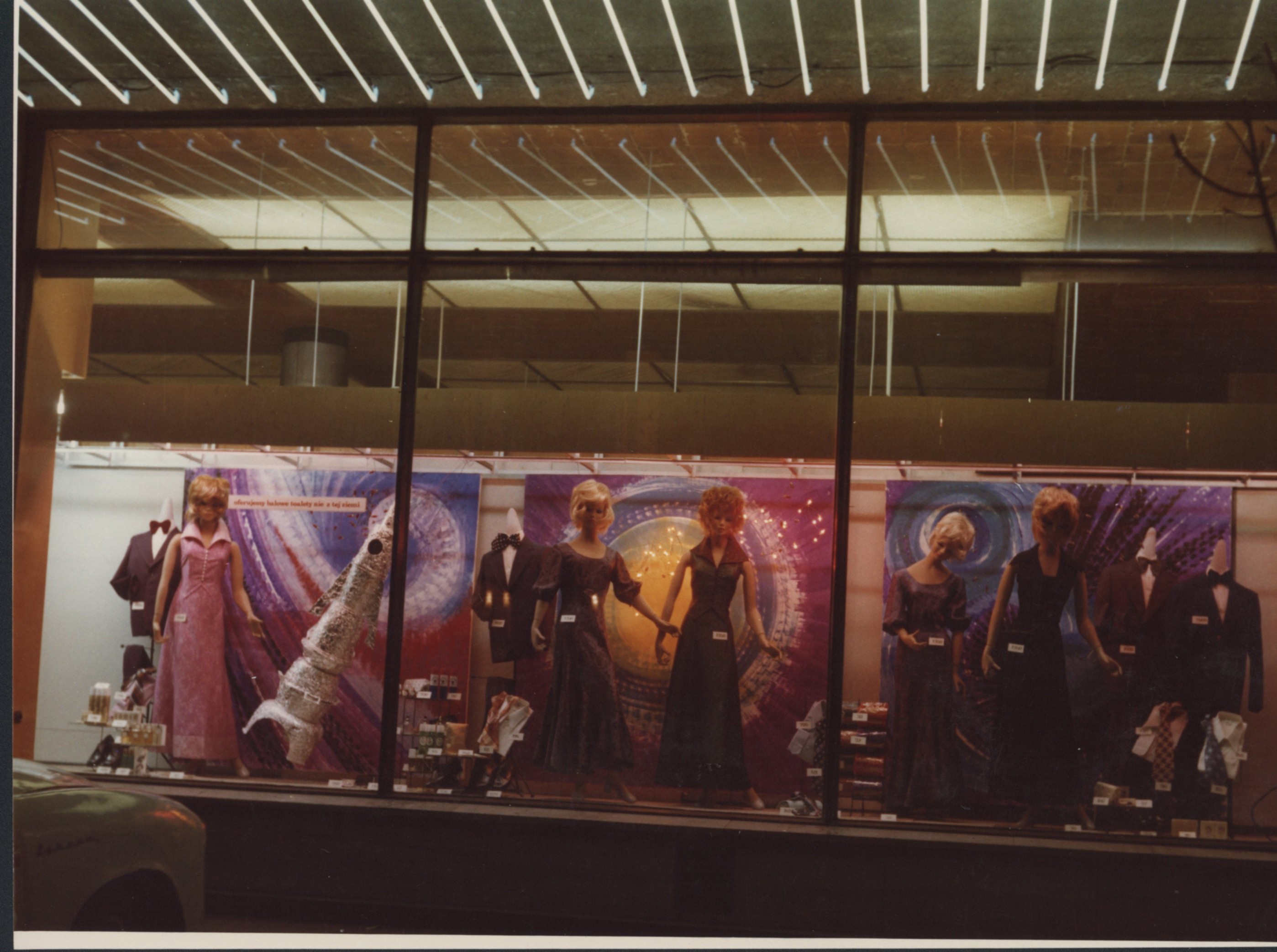Jest i Tercet Egzotyczny…, jednak gdy zima za progiem, nie czas na egzotykę, idziemy więc dalej: szeroki wybór zimowych ubrań dla Pań i Panów (zimowych, bo wystawy pod hasłem „Zima 75” ) a także dla ich Dzieci.